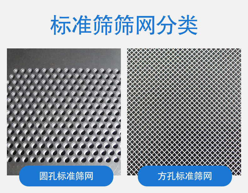 沖孔板篩網,網孔精度均勻不易變形,主要用于大顆粒的檢測,由于有圓孔和方孔兩種,所以如圓孔瀝青收集篩、圓孔煤樣篩等采用。